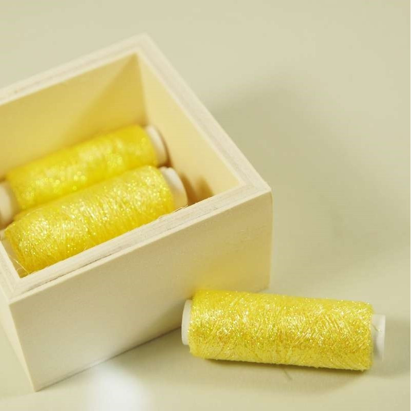 Das Garn besteht aus Seide und einem hochglänzenden Metallfaden.