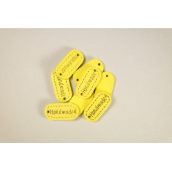 Dieser Aufnäher aus Holz hat die liebevolle Inschrift "Handmade" eingebrannt.